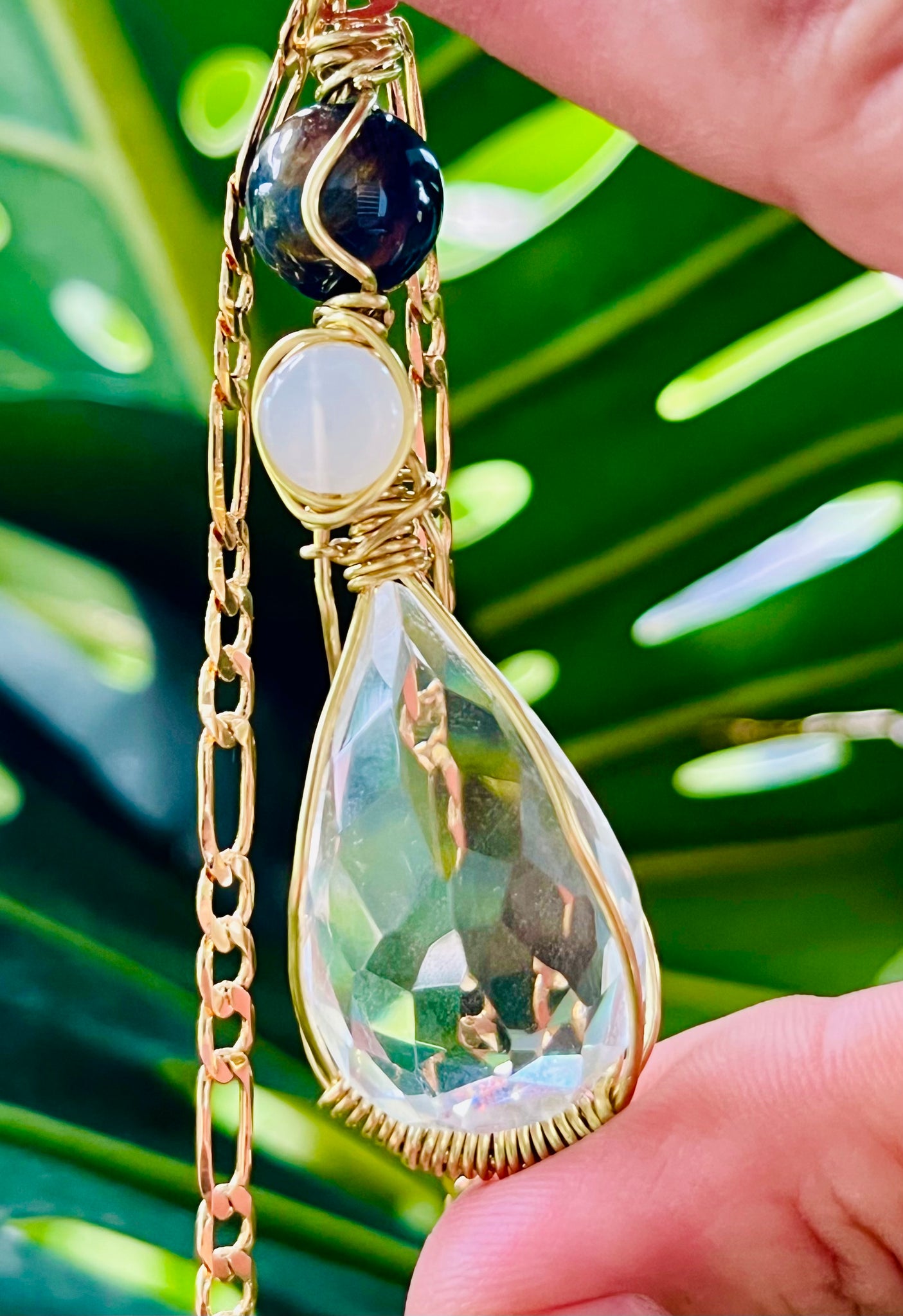 Himalayan Blue Tigerseye Moonstone Adjustable Necklace
